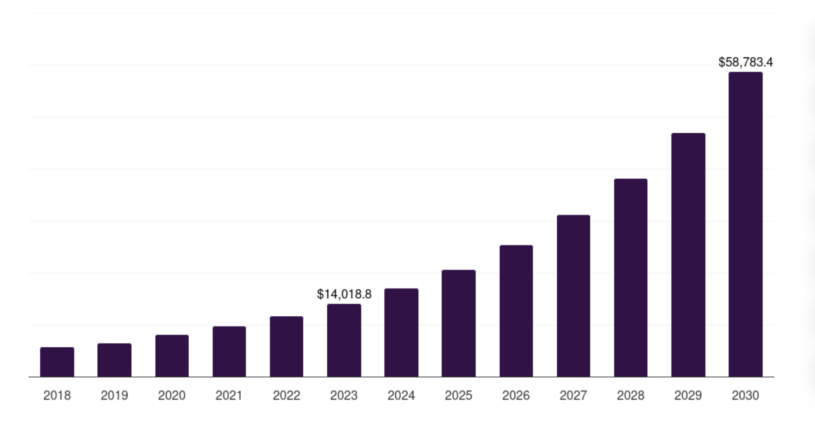 The market is expected to grow at a CAGR of 22.6% from 2024 to 2030.